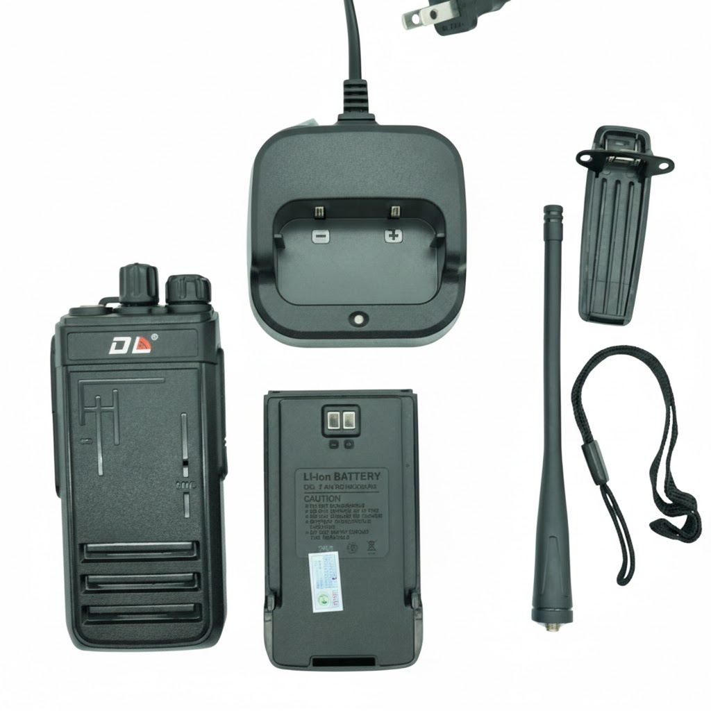 Bên cạnh những ưu điểm về độ bền và khả năng liên lạc ổn định, Bộ đàm DL T5800 còn được đánh giá cao nhờ tính tiện dụng trong quá trình sử dụng hằng ngày. Các nút bấm bố trí trực quan, dễ thao tác kể cả với người mới, giúp nhân viên nhanh chóng làm quen mà không cần đào tạo phức tạp. Phụ kiện đi kèm đầy đủ như anten, sạc bàn, bát gài lưng và dây đeo giúp thiết bị sẵn sàng sử dụng ngay khi mở hộp, đáp ứng tốt nhu cầu liên lạc nội bộ liên tục và chuyên nghiệp.