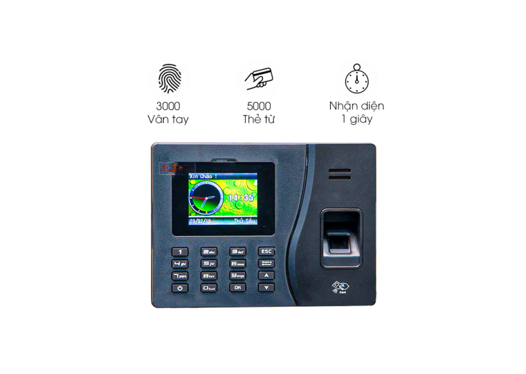 - 5.000 vân tay + 5.000 thẻ + mật khẩu → đa dạng lựa chọn đăng nhập, không lo quên thẻ hay vân tay bị lỗi.